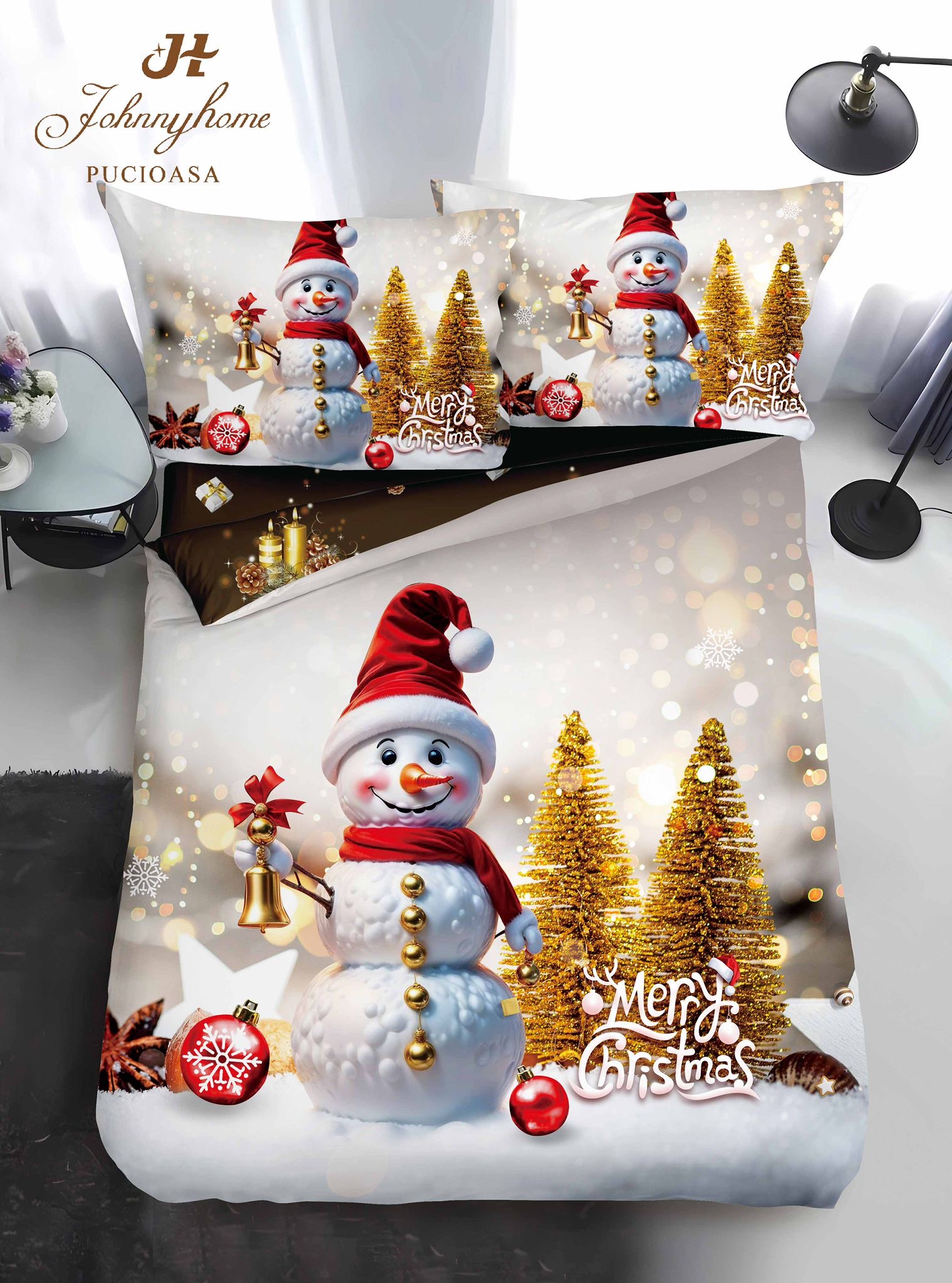 Коледен единичен комплект спално бельо с ластик – QY005