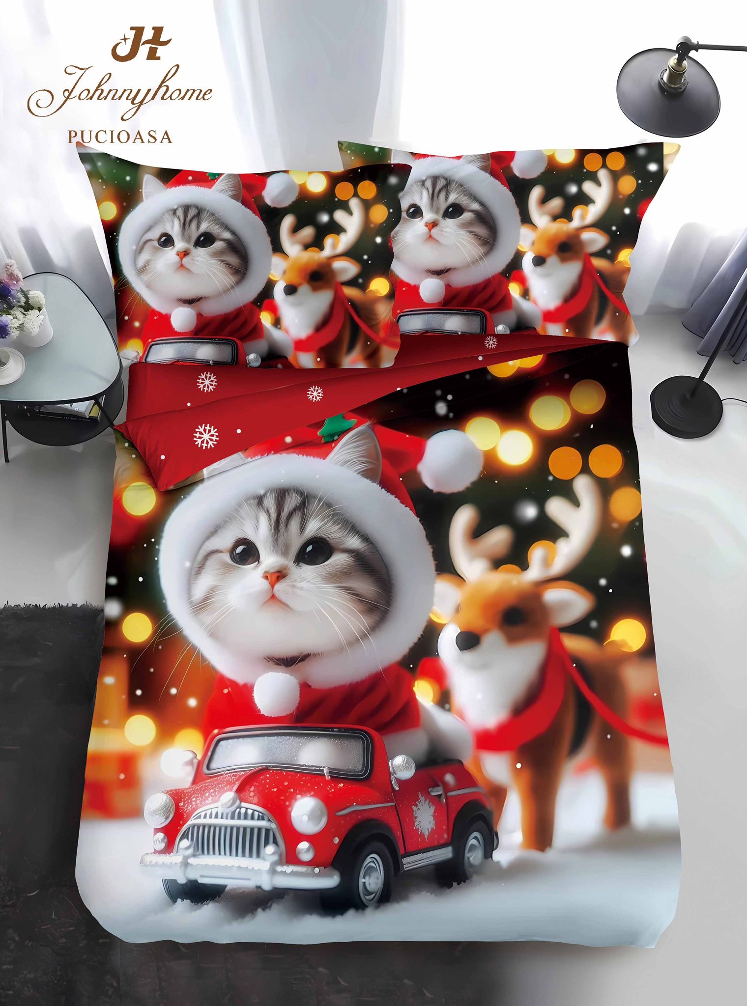 Коледен единичен комплект спално бельо с ластик – QY011