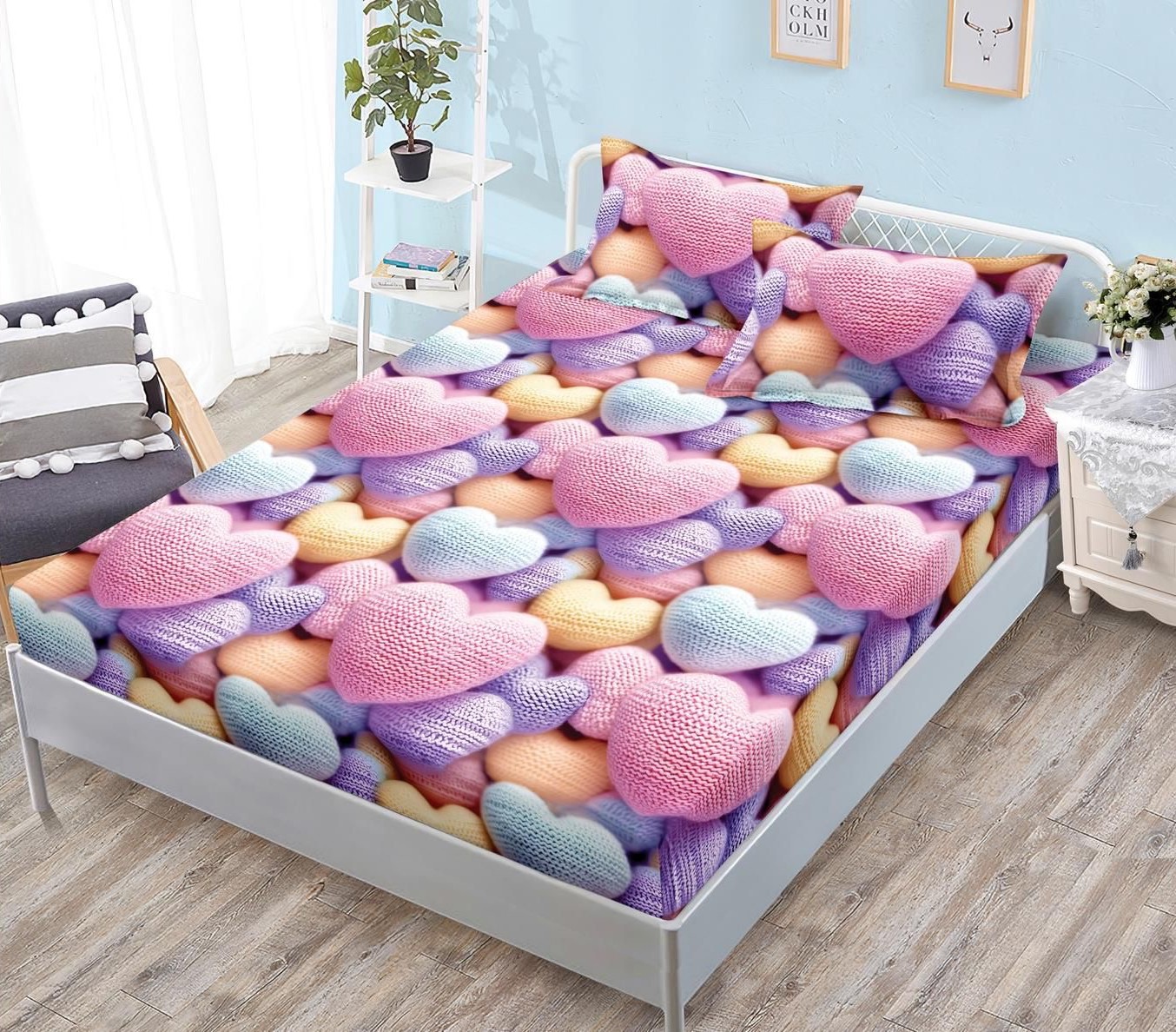 Долен чаршаф с ластик и 2бр. калъфки – 3J-073