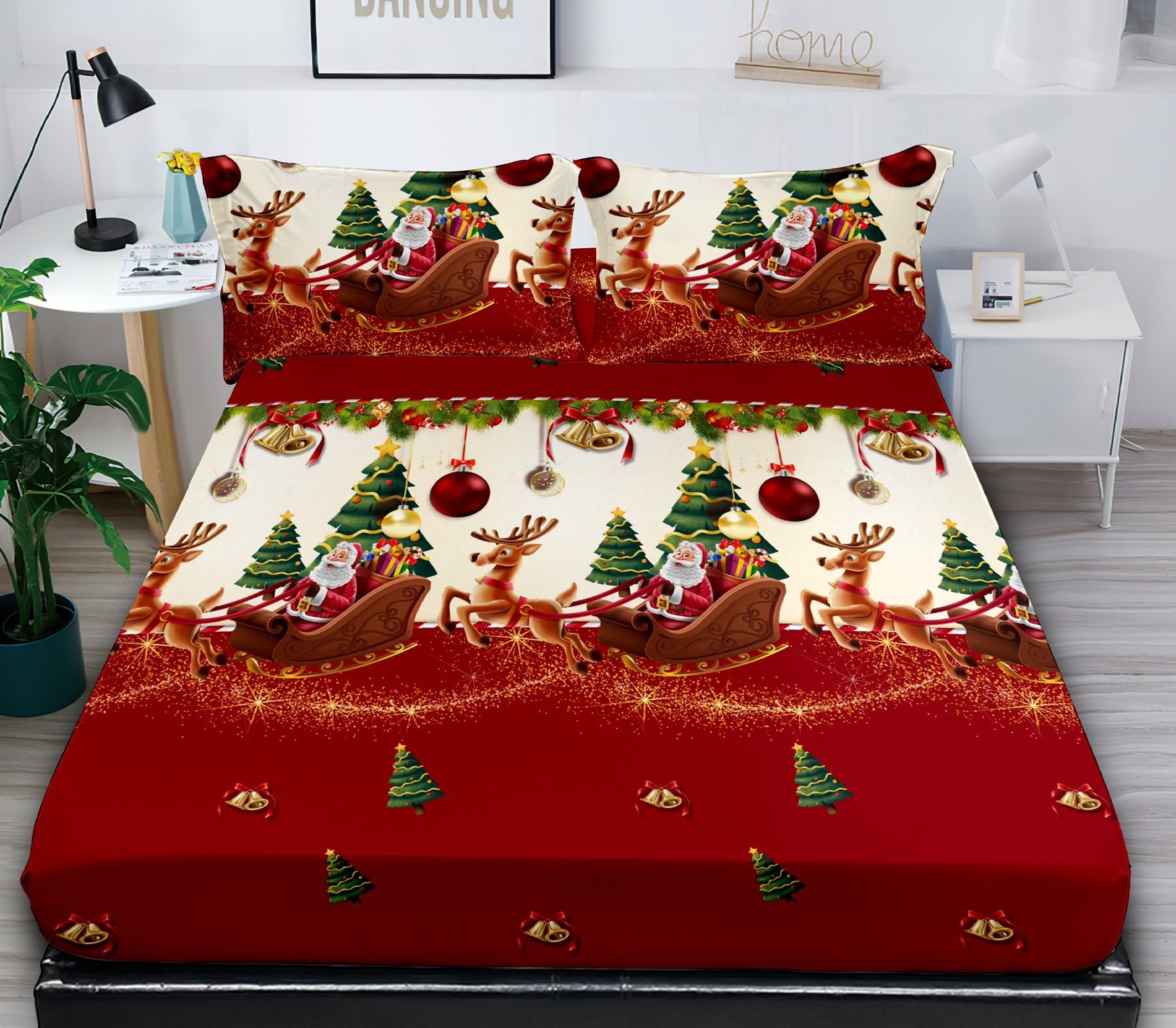 Коледен комплект спално бельо: Долен чаршаф с ластик и 2бр. калъфки – 3KL004