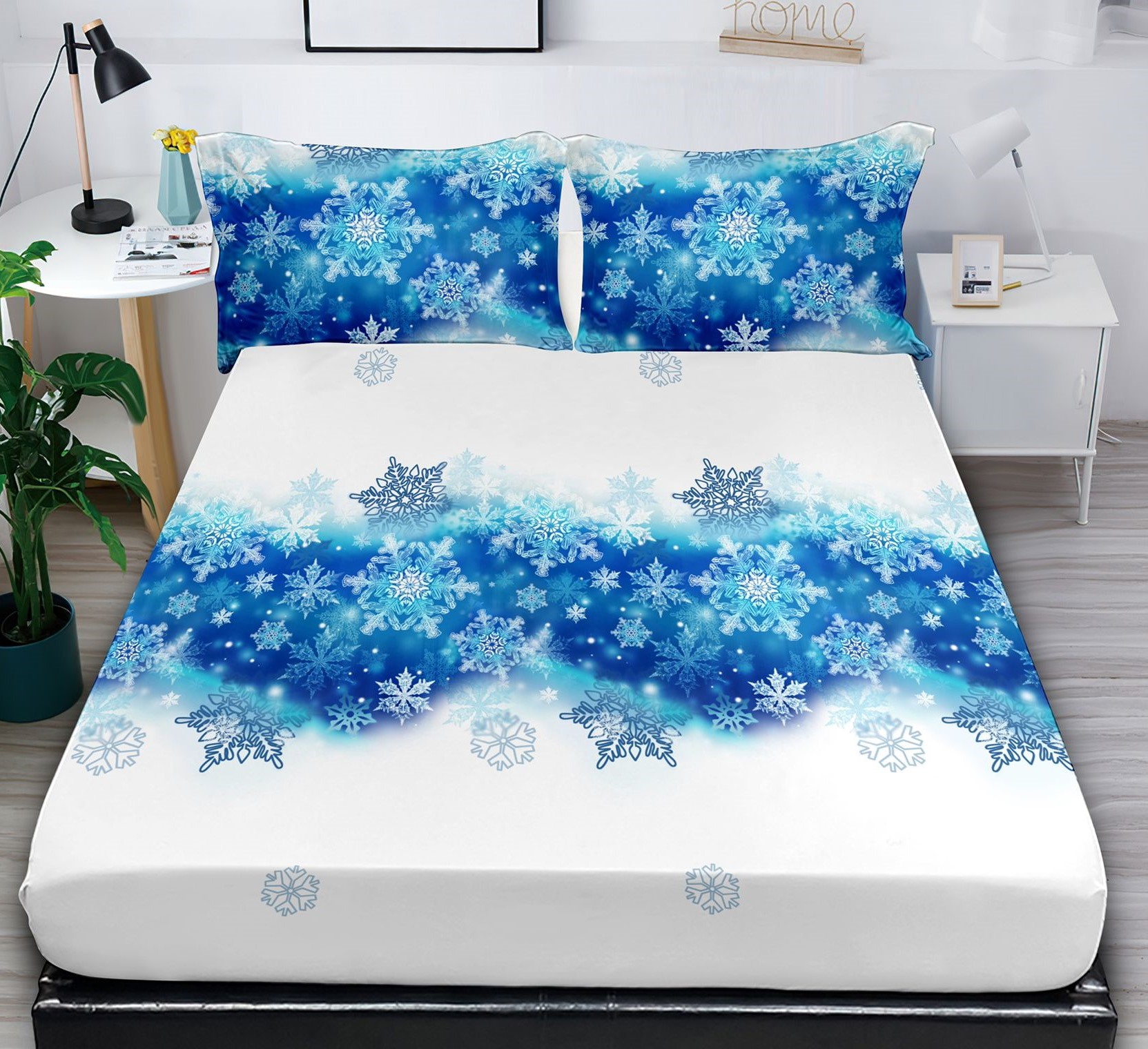 Коледен комплект спално бельо: Долен чаршаф с ластик и 2бр. калъфки – 3KL006