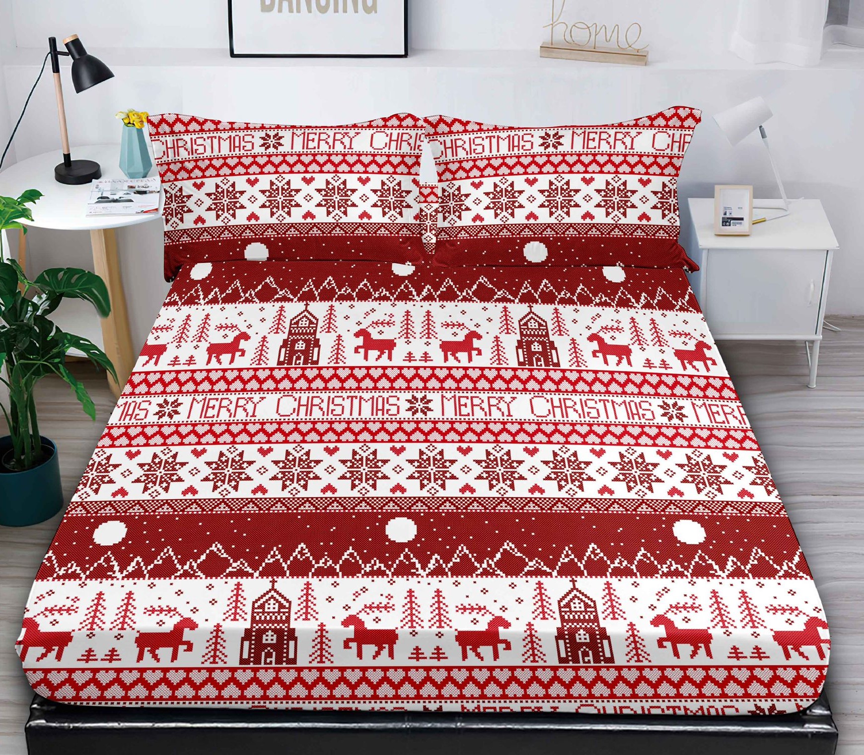 Коледен комплект спално бельо: Долен чаршаф с ластик и 2бр. калъфки – 3KL009