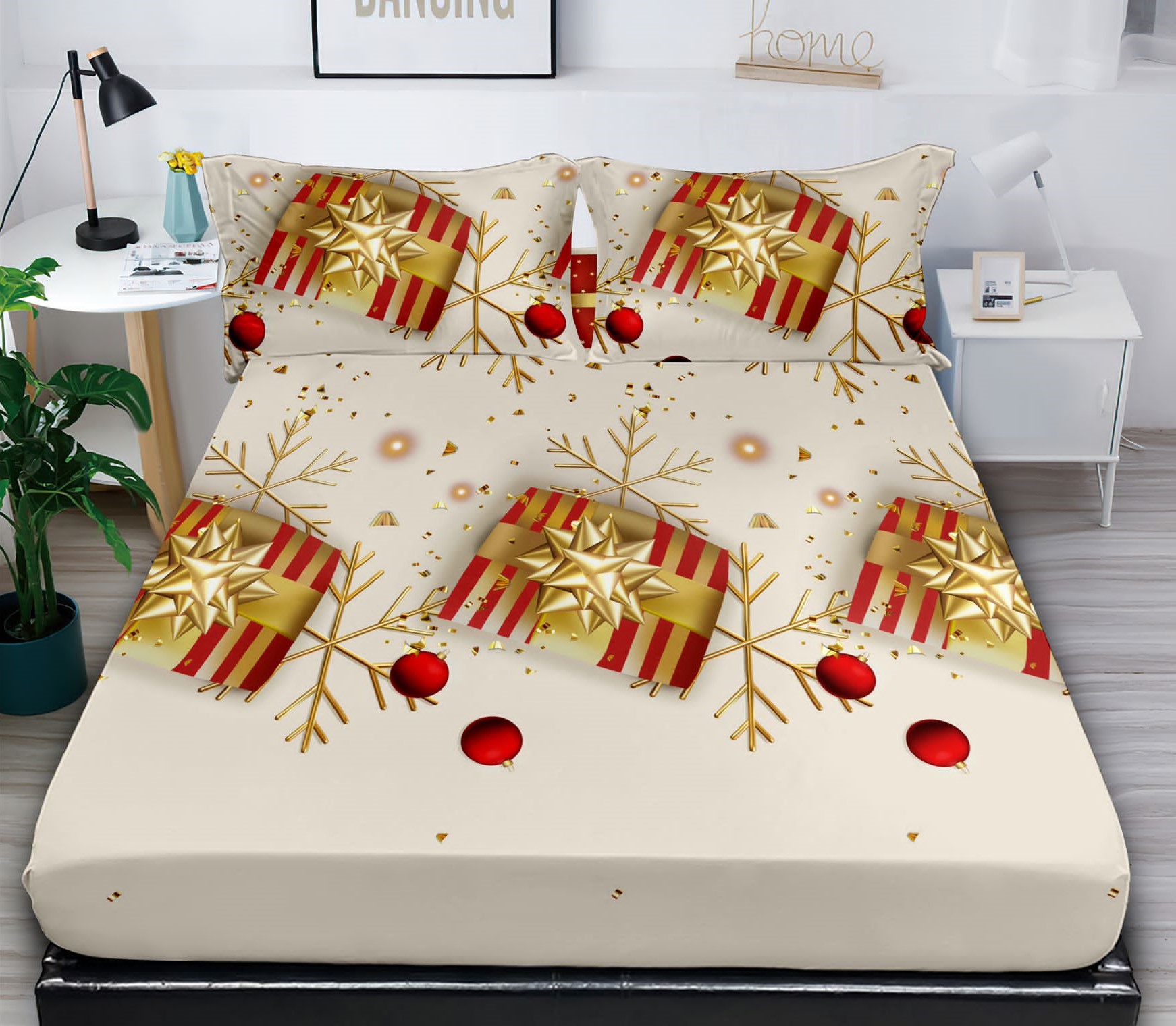 Коледен комплект спално бельо: Долен чаршаф с ластик и 2бр. калъфки – 3KL011