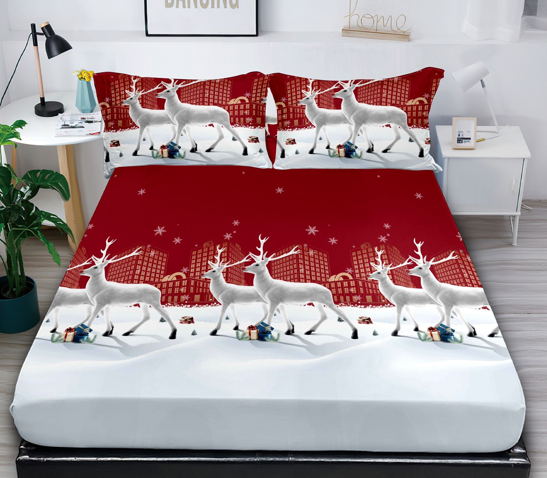 Коледен комплект спално бельо: Долен чаршаф с ластик и 2бр. калъфки – 3KL012