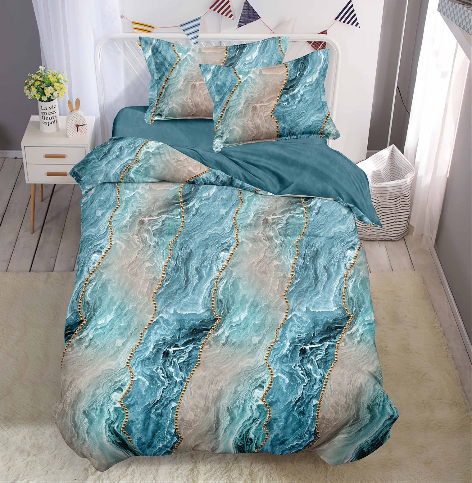 Единичен комплект спално бельо с ластик – T60-012