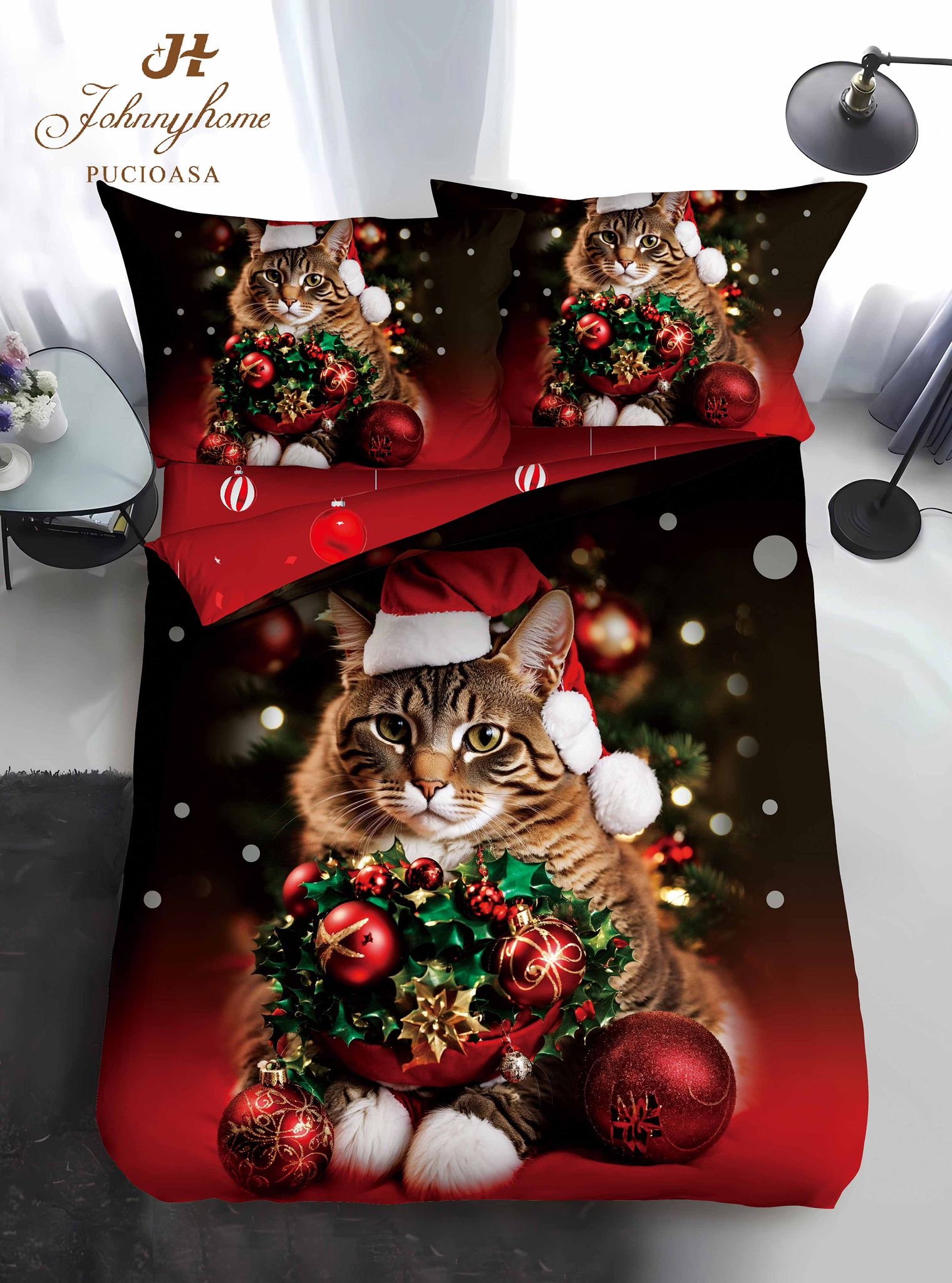 Коледен единичен комплект спално бельо с ластик – QY008
