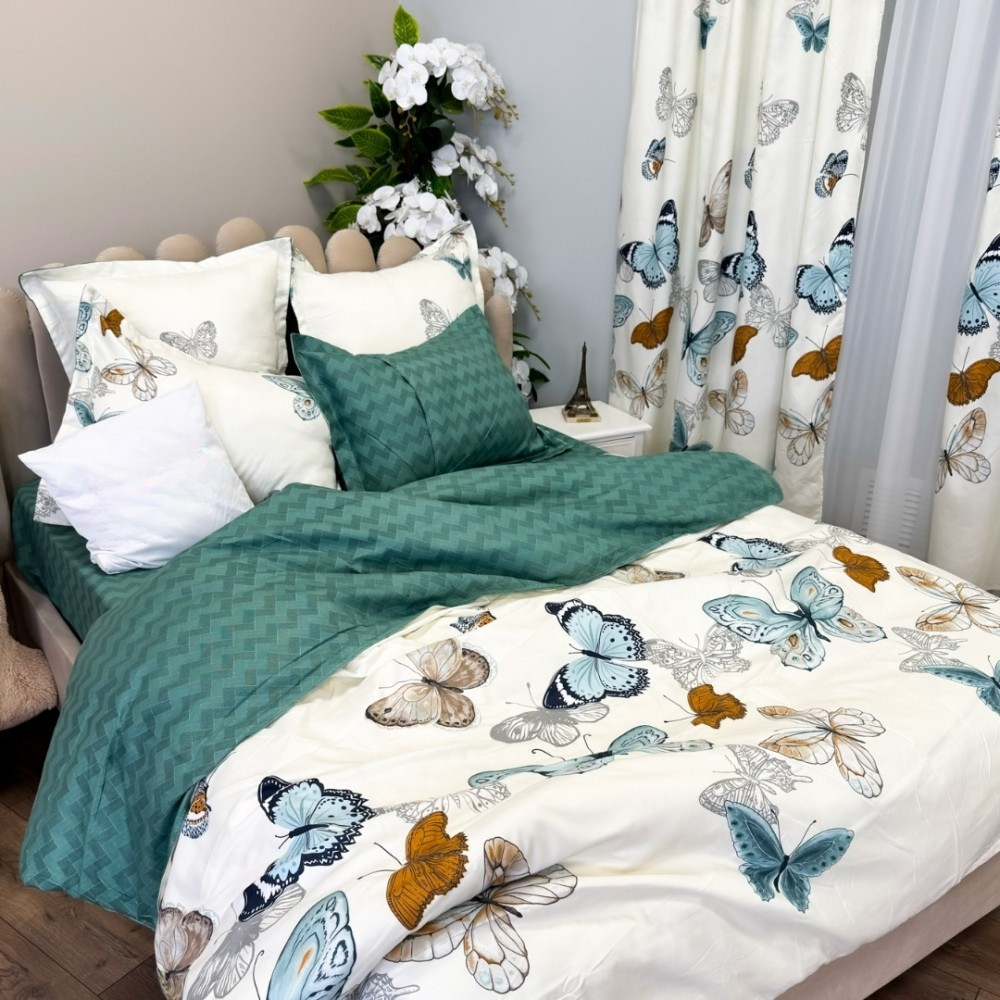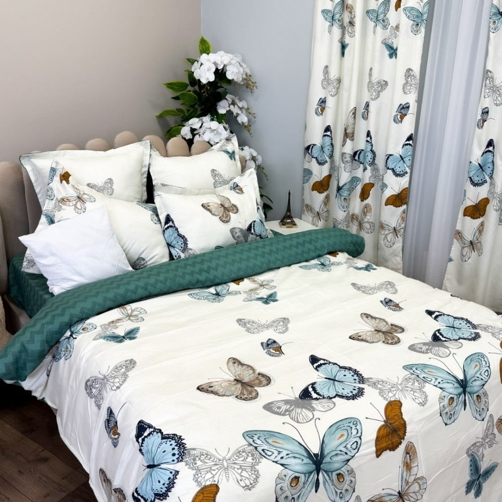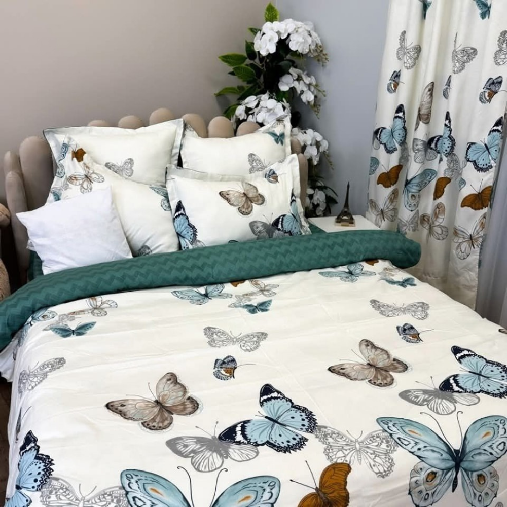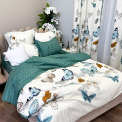 Комплект спално бельо от фин памук, 8 части, с включени завеси – Модел пеперуди
